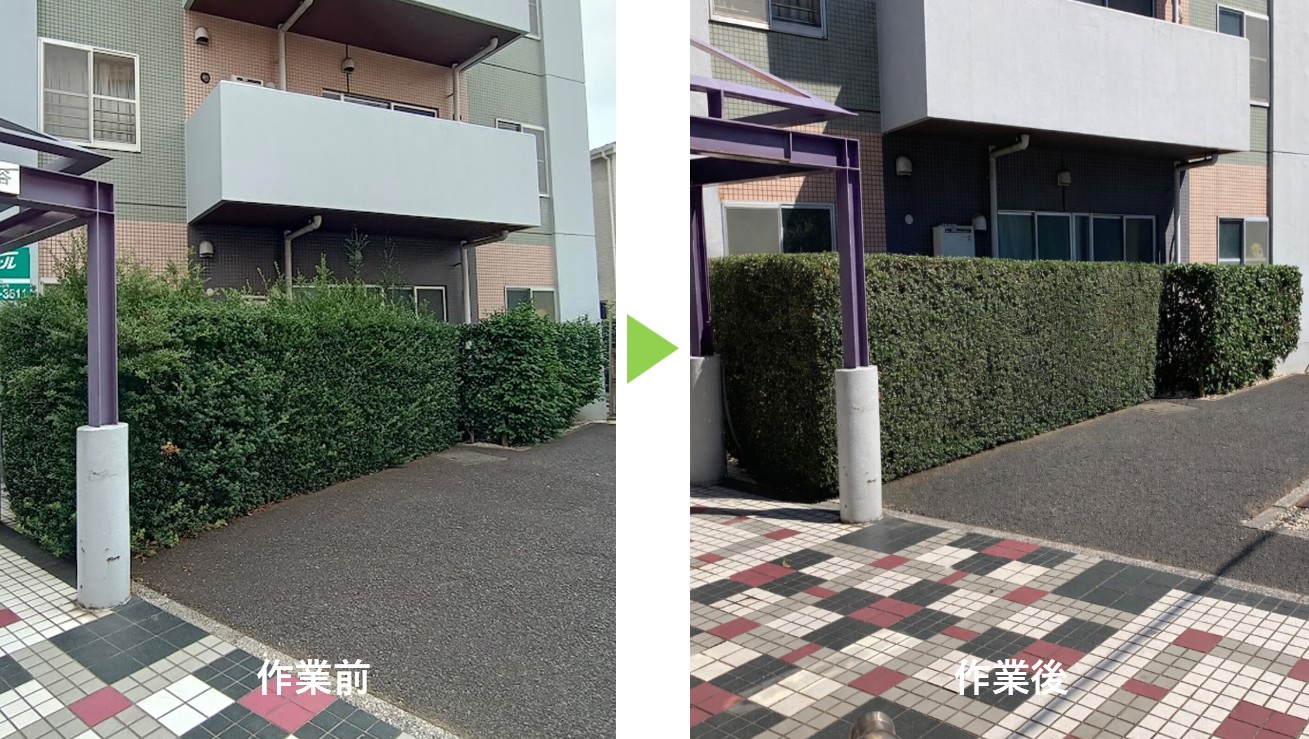 弊社では、日常清掃業務受託物件については、害虫の発生により様々なトラブルが発生しないよう、担当スタッフ以外の専門性を持つスタッフが、定期的に植栽の状況も確認しております。